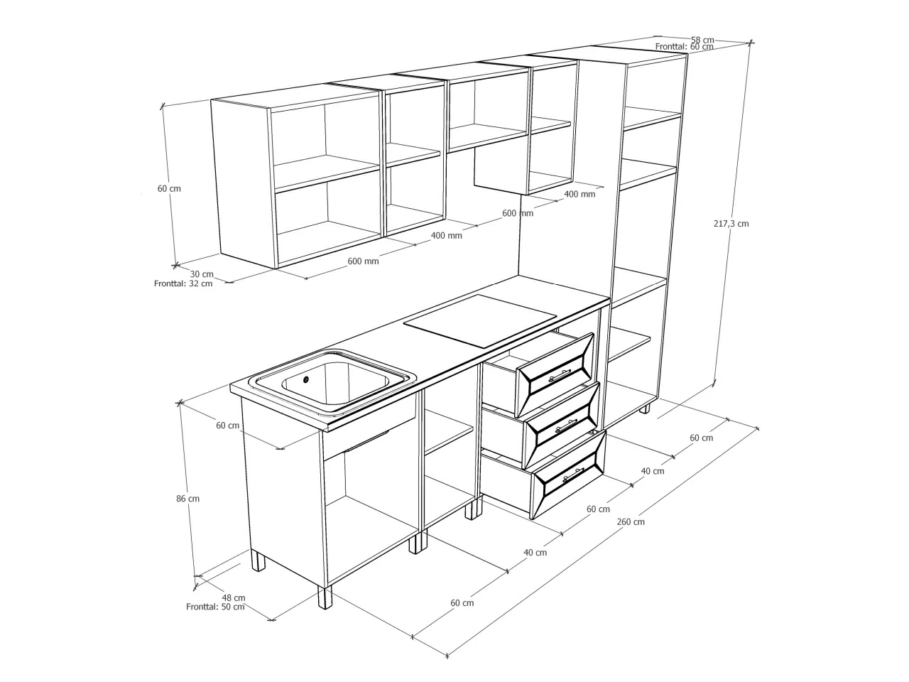 A konyhaszekrény 18 mm-es laminált bútorlapból ABS élzárással és köldökcsapozással készül.