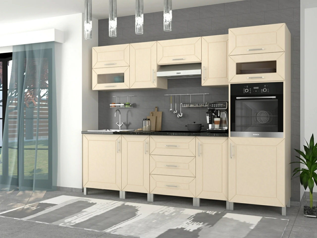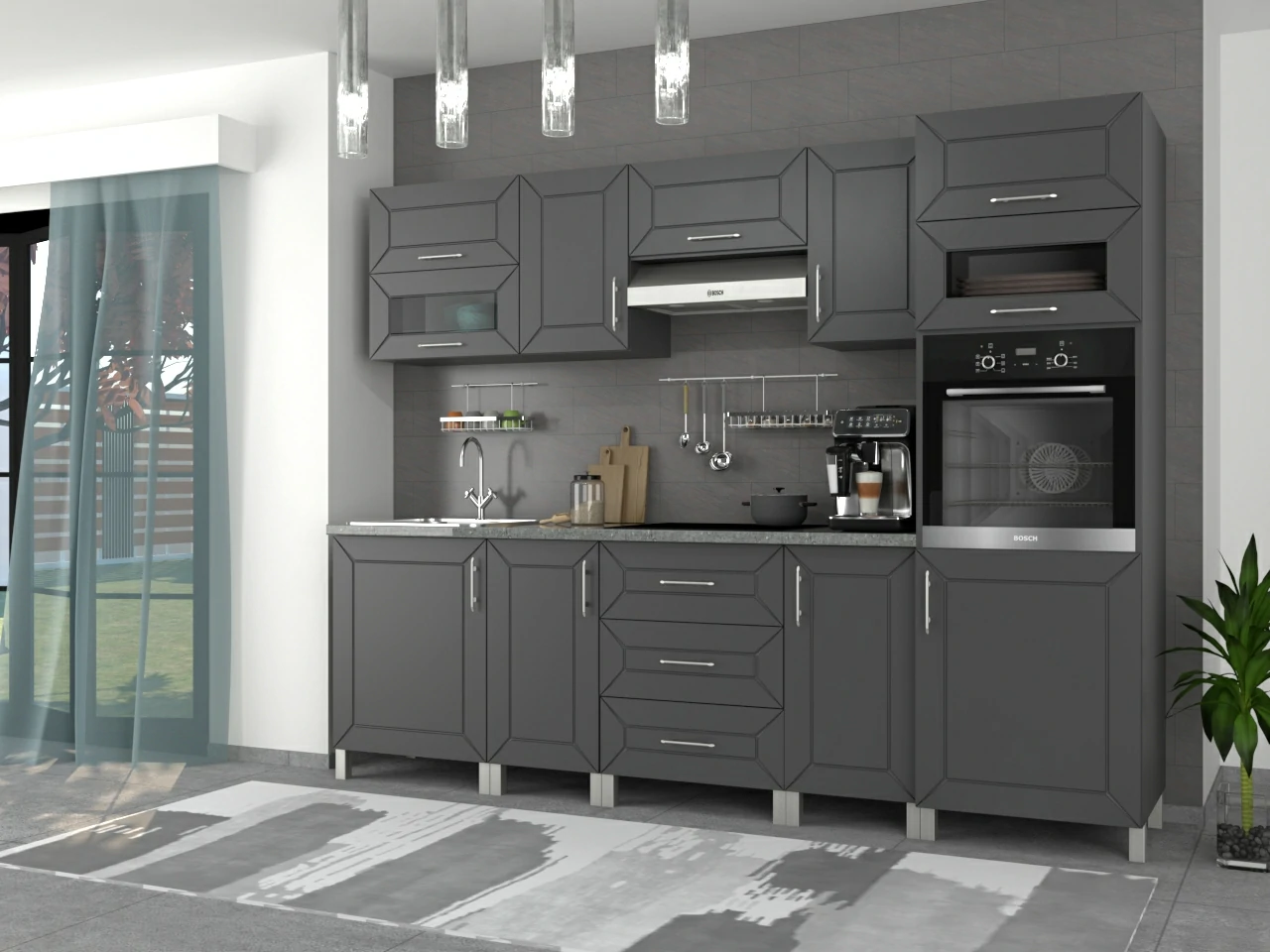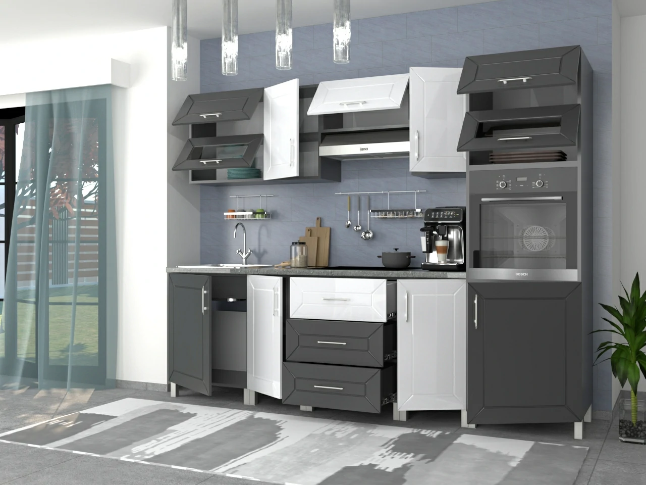 Az ajtók 16 mm-es, belső oldalt fehérrel laminált, frontoldalt 3D bemarással 0,4 mm vastag vákumfóliázott MDF-ből készül választható színekből.