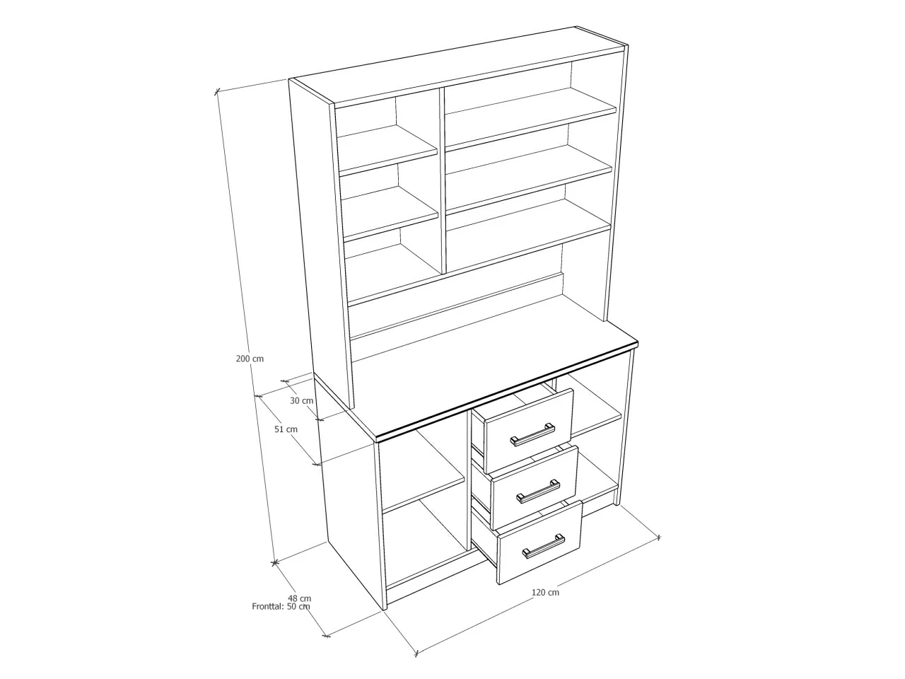 A hátfal a zárt részeken fehér, a nyitott részeken színes, de színben és árnyalatban eltérhet a korpusz színétől. 2,5 mm-es HDF lemez, mely tűzőkapoccsal van rögzítve.