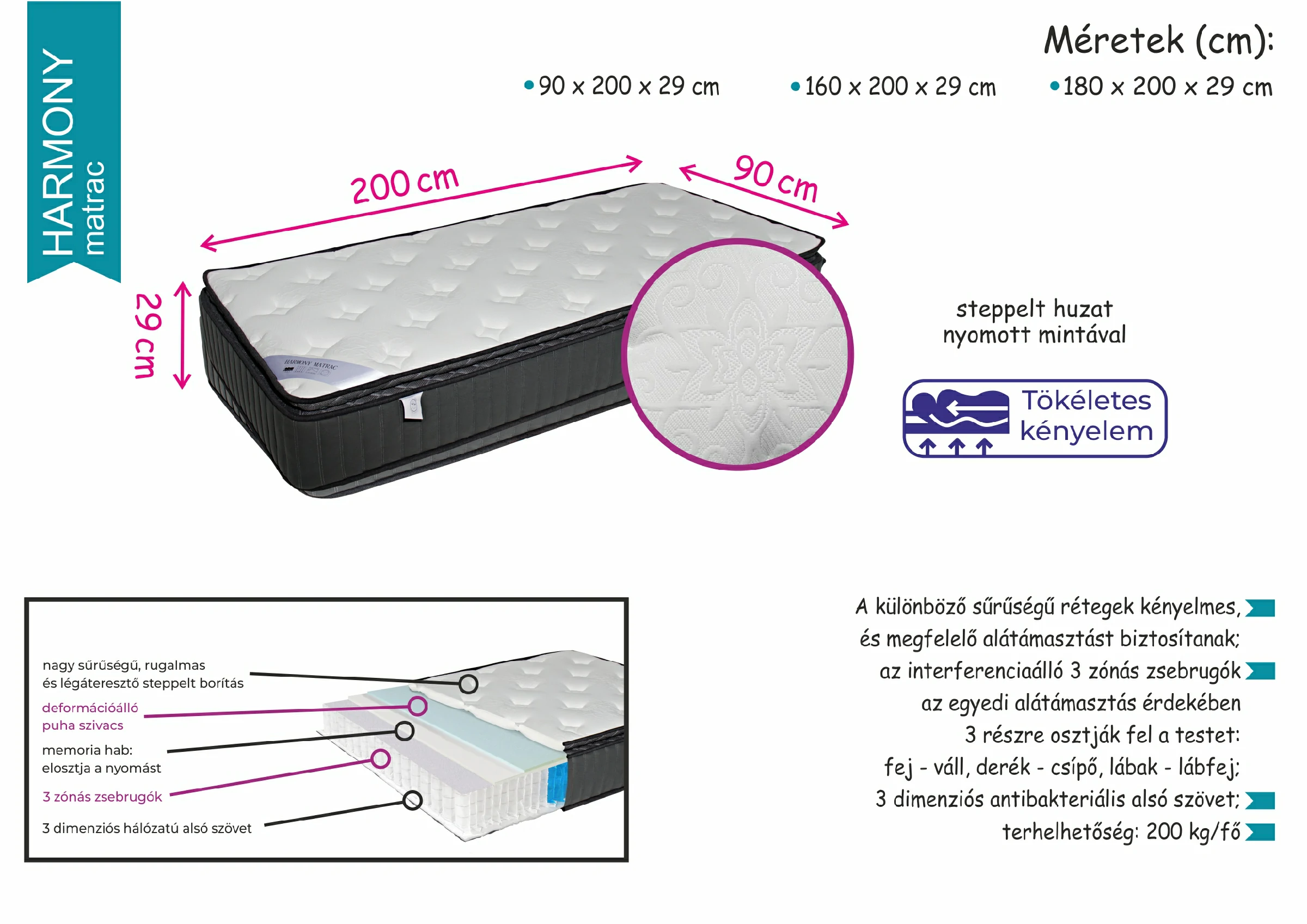 szél/hossz/mag: 180 / 200 / 29 cm