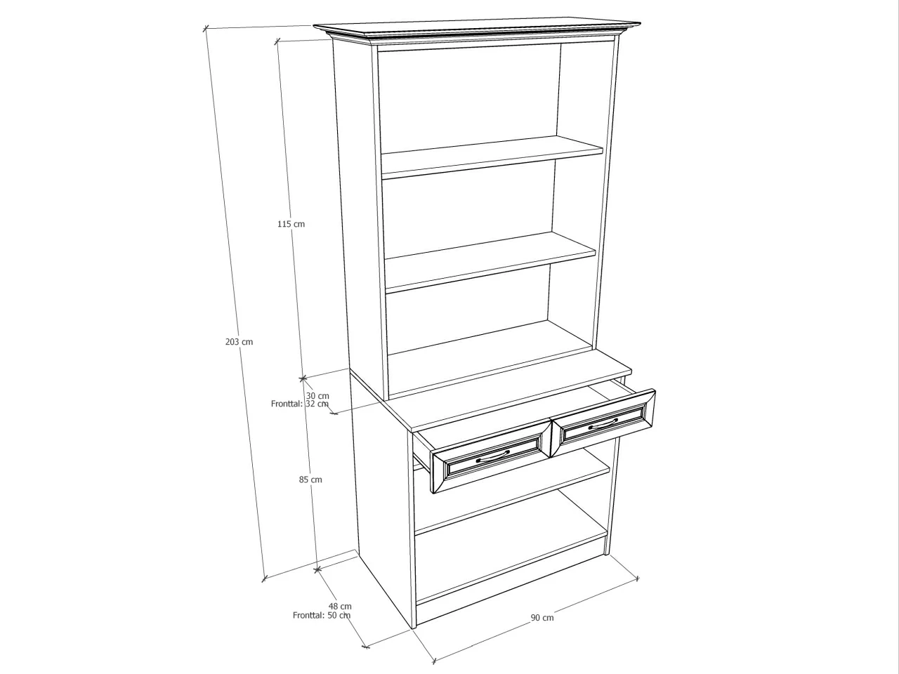 Az ajtó és fiókelő szintén 18 mm-es bútorlapból készül, amely keretléccel van díszítve.
