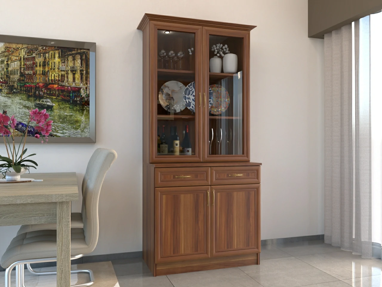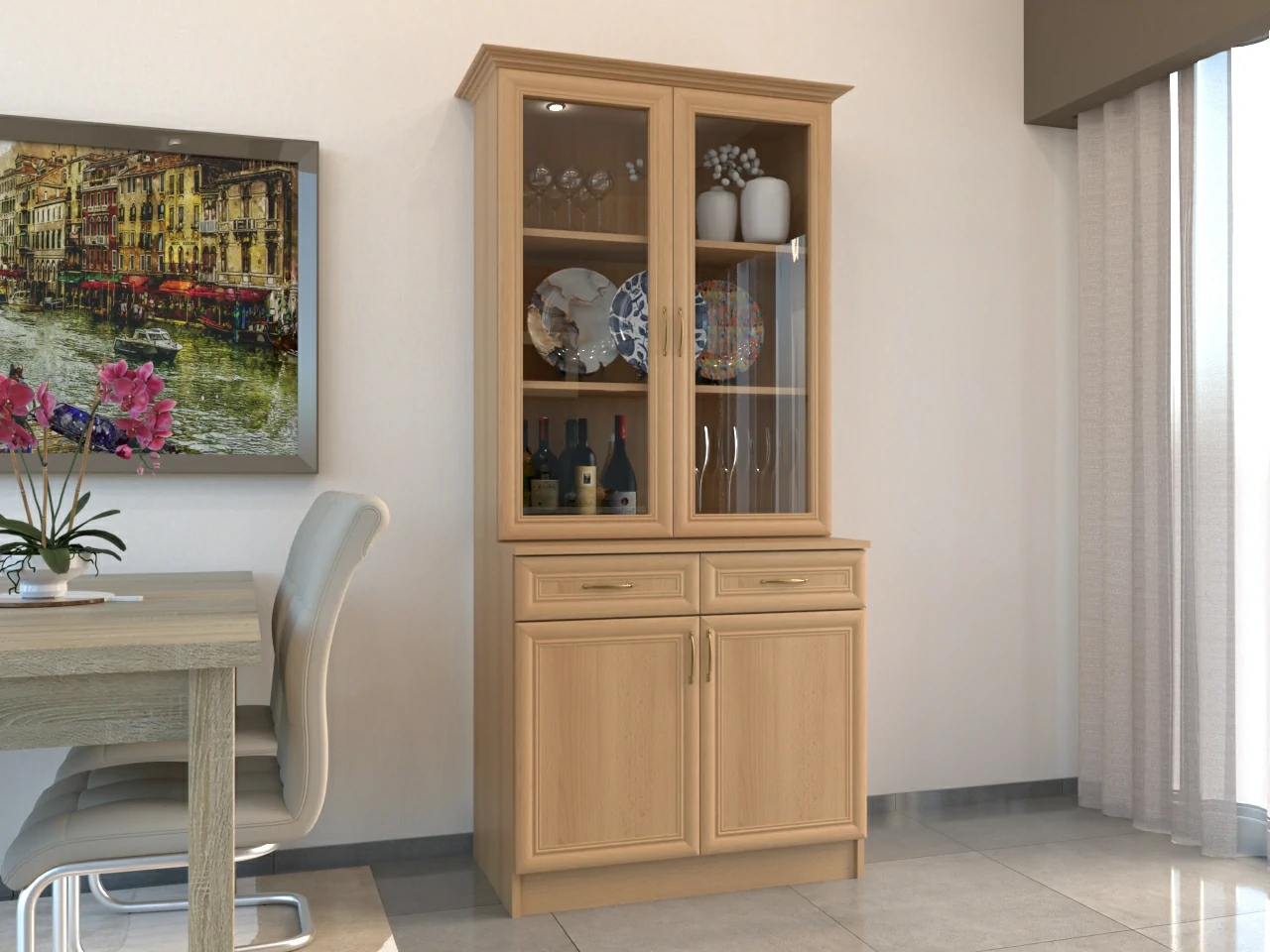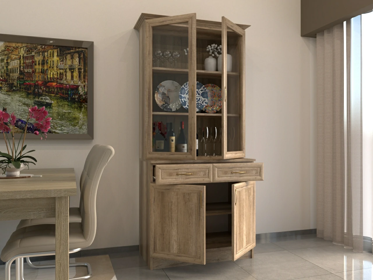 A tálalószekrény 18 mm-es laminált bútorlapból ABS élzárással és köldökcsapozással készül.