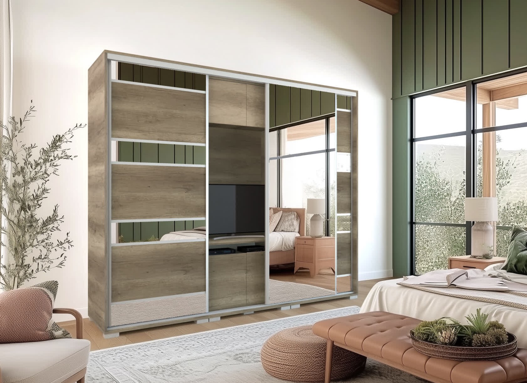 Egyediségét az adja, hogy zárt állapotban egy elegáns tolóajtós gardróbnak tűnik, viszont a középső részen televízió számára kialakított hely található.