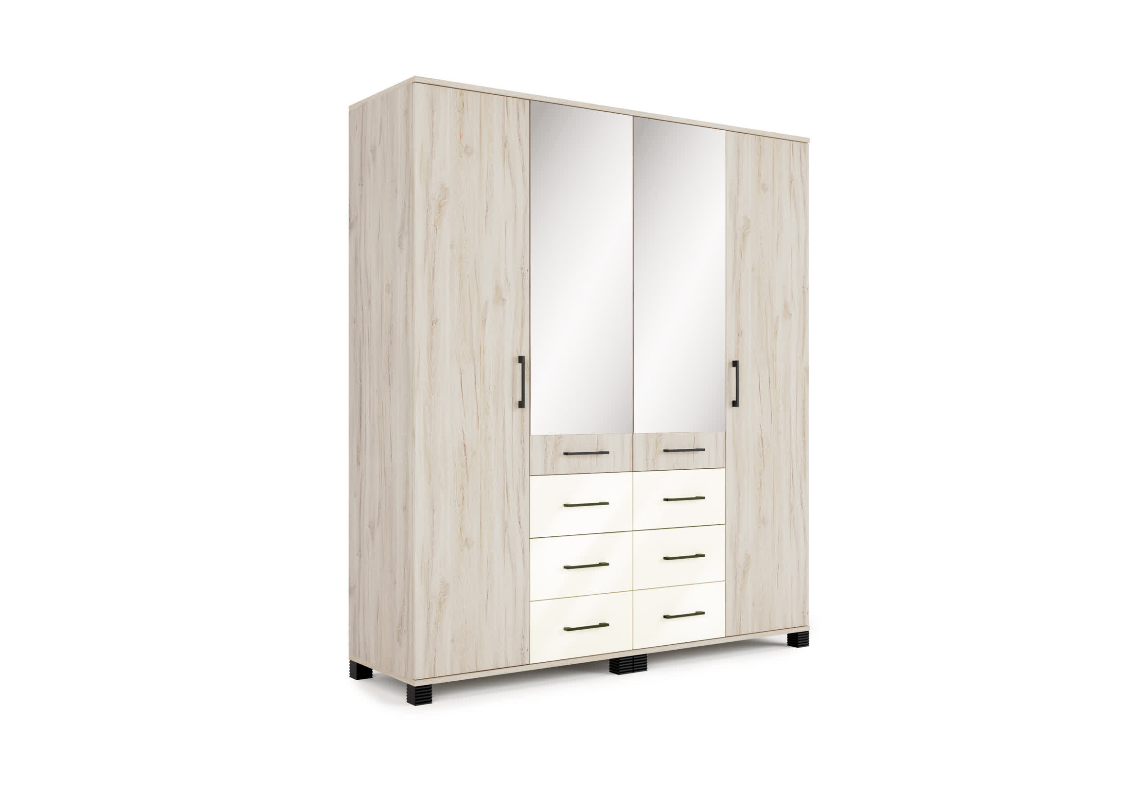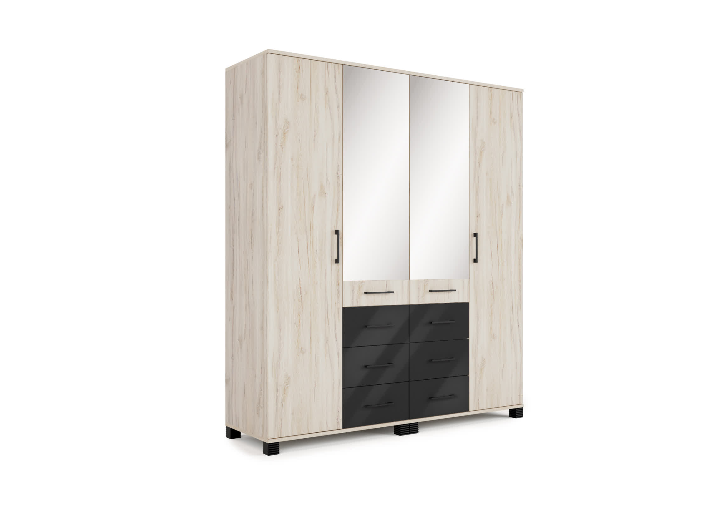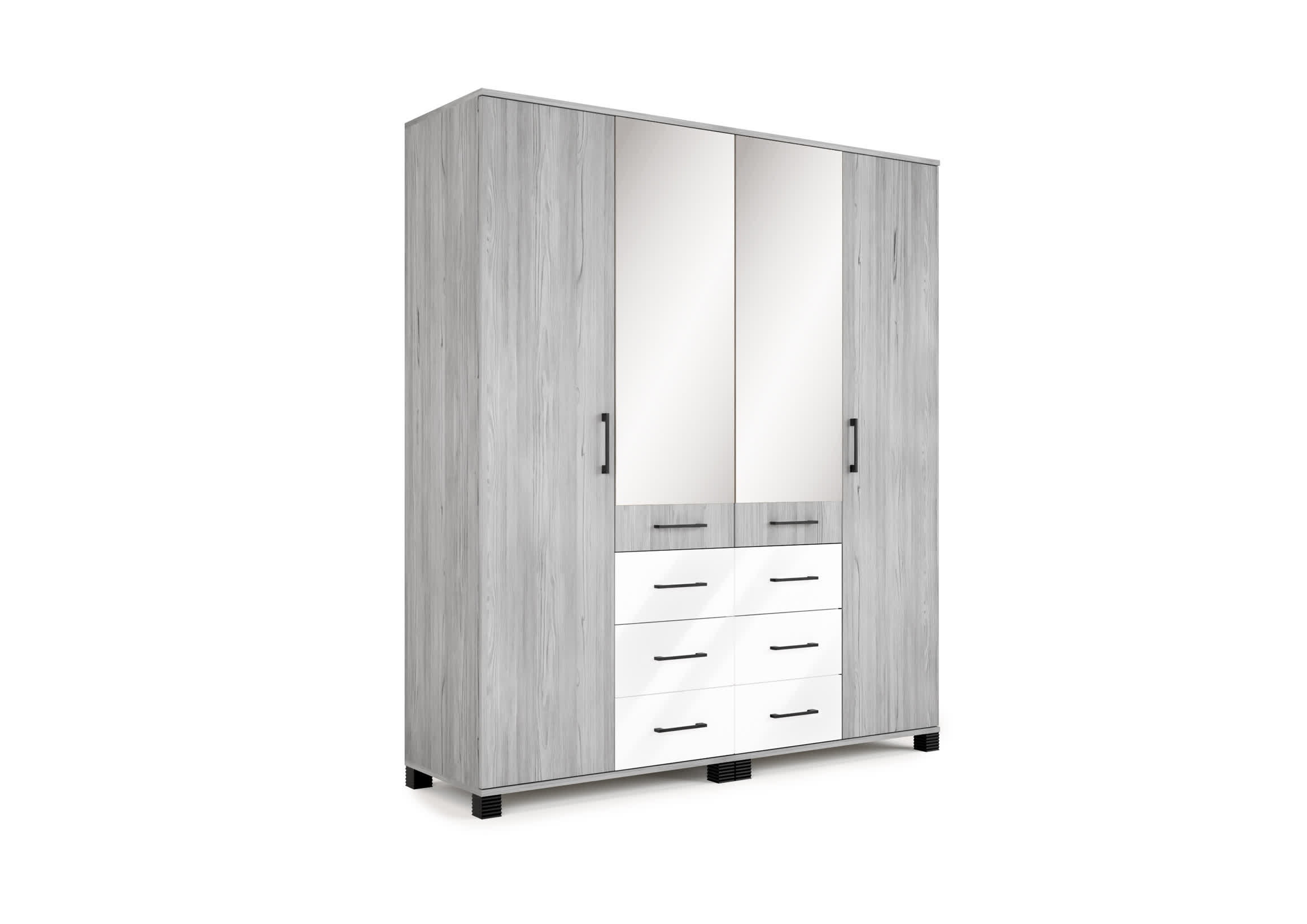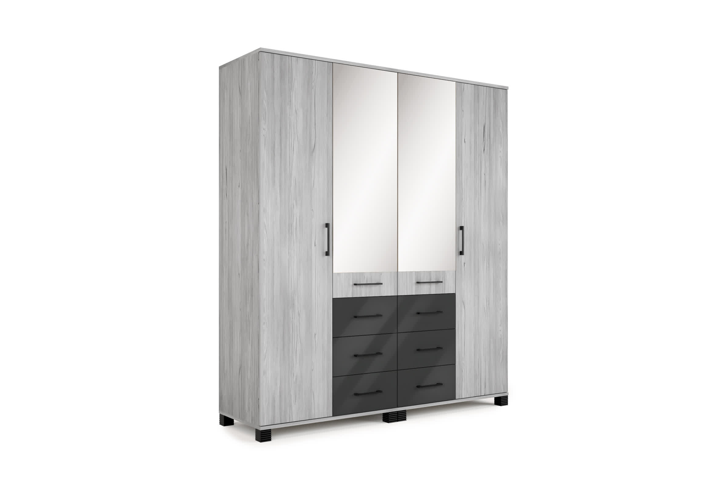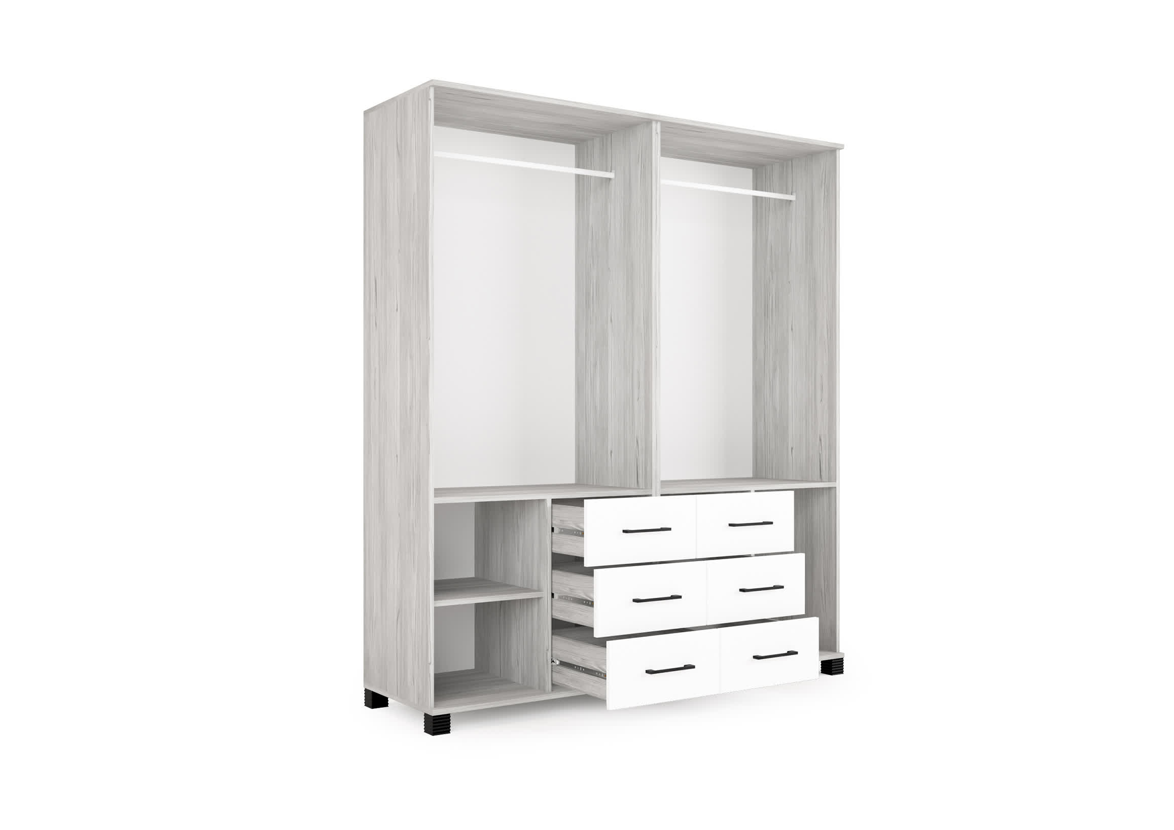 Magas gardrób, minden típusú ruhának van benne hely: vállfás, fiókos, polcos része is van.